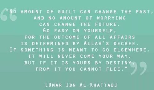 No one is in control of what is going to happen to them, but we are in control of our reaction to it. Instead of cursing the fall and wailing, we should be content about what happens, and have faith that Allah knows what He is doing. He gives to does that doesn`t ask Him, how can we think that He wouldn`t give to those whom remember and prays to Him throughout their day. Sometimes most often we make a cup of tea or some food for some guests. In the meanwhile some other guests come before the ones it supposedly was made for. So they eat and drink the food instead. For example you have a cup of coffee, you take the cup to you mouth to take a sip. Suddenly you spill the coffee. It wasn`t in your destiny. Allah had written that you weren`t supposed to drink it.