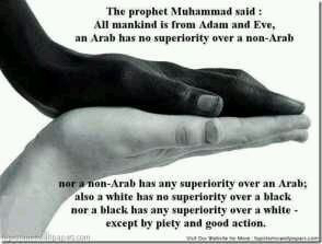 Muslims with different colors and ethnicities are hating each other because they feel that they are better than the other because of their heritage, color etc. Isn`t that one of the things our Messenger pbuh fought to diminish. He said that no one is better than another no matter what their wealth, position, color or ethnicity is. If one of them are better than the other it is the one with the best taqwa / godfear that has the highest status. Haven`t we often seen that people with lesser positions in dunya, for instance someone whom is a cleaner, leads the salah, where people whom are wealthy is praying behind him. That is because the cleaner is with more knowledge of the deen than those in prayer behind him. Or the fact that everyone in prayer, no matter what status they have in dunya are standing beside each other in prayer. No one is ahead of anyone else, except for the Imam. We are all going into the same place in graveyard no matter how much wealth we collect. We have definitely forgotten the teachings of our Prophet pbuh when some people are behaving superior of others.