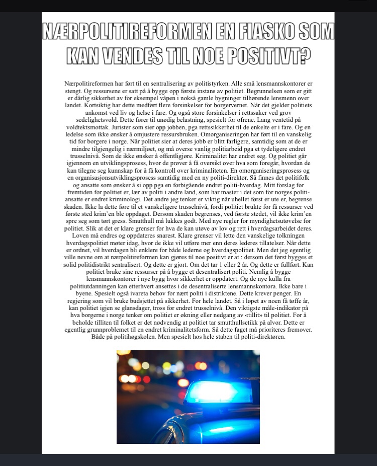 Nærpolitireformen – En fiasko som kan vendes til noe positivt